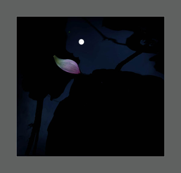 月光下的白荷花