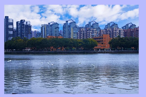 随着环境改善,温州市区汇昌湖迎来大量白鹭