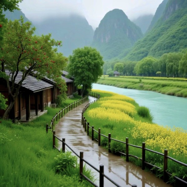 山水间的家:岷江晨韵