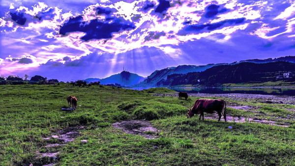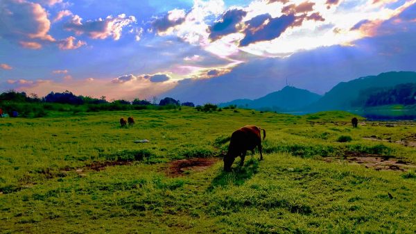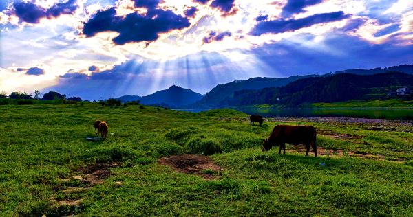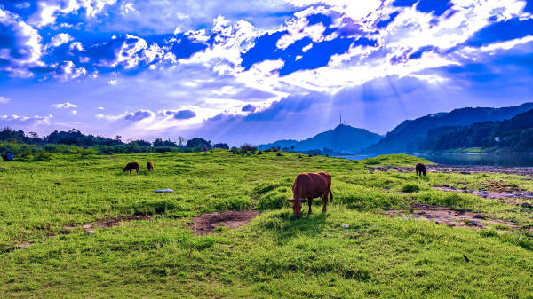 丁达尔照耀着岷江牧场